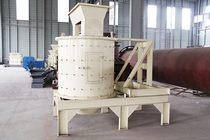 物料由機(jī)器上部垂直落入高速旋轉(zhuǎn)的葉輪內(nèi),在高速離心力的作用下,與另一部分以傘狀形式分流在葉輪四周的物料產(chǎn)生高速撞擊與粉碎,物料在互相撞擊后,又會(huì)在葉輪和機(jī)殼之間以物料形成渦流多次的互相撞擊、摩擦而粉碎,從下部直通排出,形成閉路多次循環(huán),由篩分設(shè)備控制達(dá)到所要求的成品粒度。